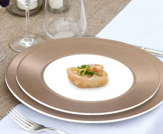 Piatti in porcellana bianca decorata" Linea Florence Bronzo" - 4 modelli disponibili -